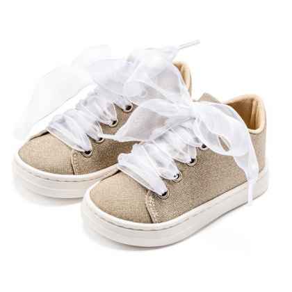 Sneaker απο Μεταλιζέ Ύφασμα και Δέσιμο Κορδέλα Οργάντζας σε Πλατίνα Χρώμα