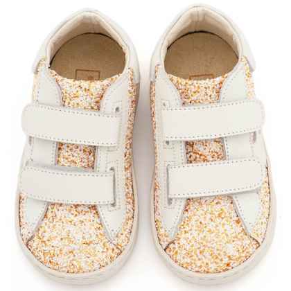 Sneaker Διπλό Χρατς απο Glitter και Δέρμα με Αστέρι στο Πλάι σε Εκρού Χρώμα