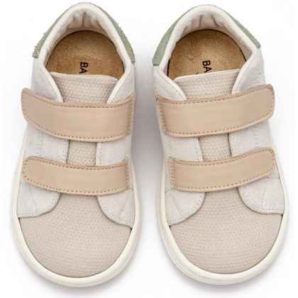Δίχρωμο Σνίκερ από Δέρμα και Ύφασμα με Διπλή Μπαρέτα Χρατς σε Λευκό Μπεζ Χρώμα